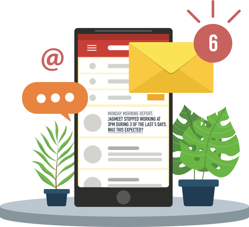 When your remote team members have stopped doing what they're being paid to do, you get email reports with easy-to-read AI-generated insights.